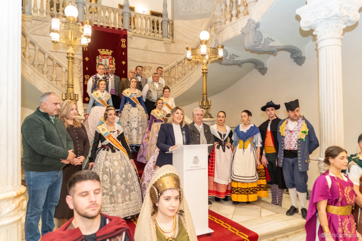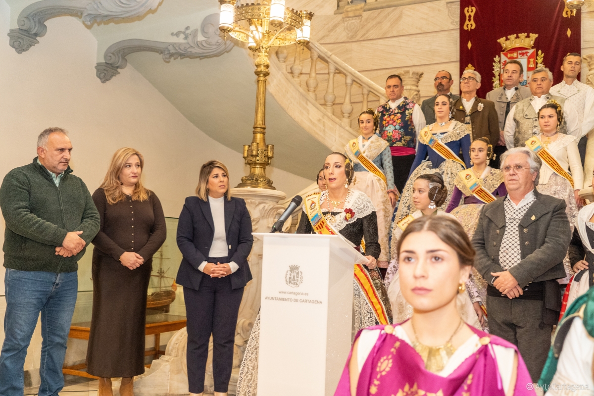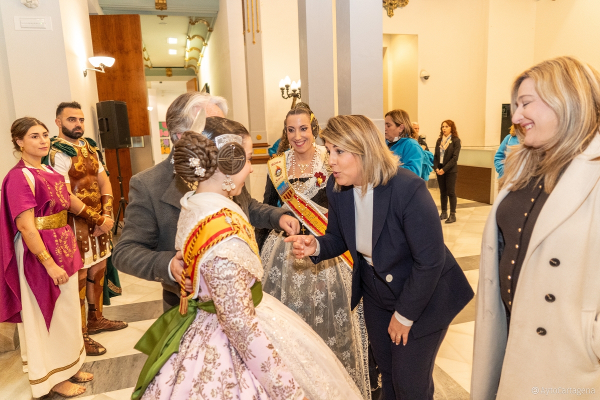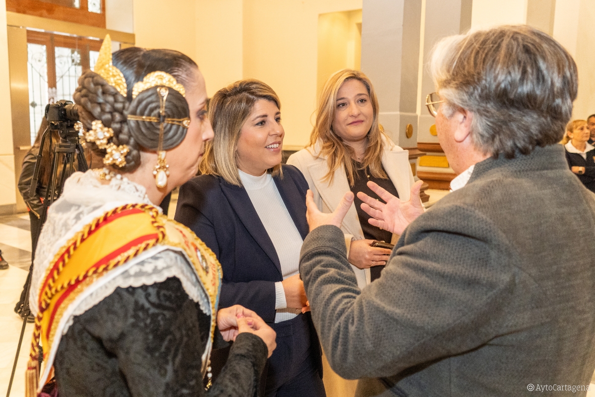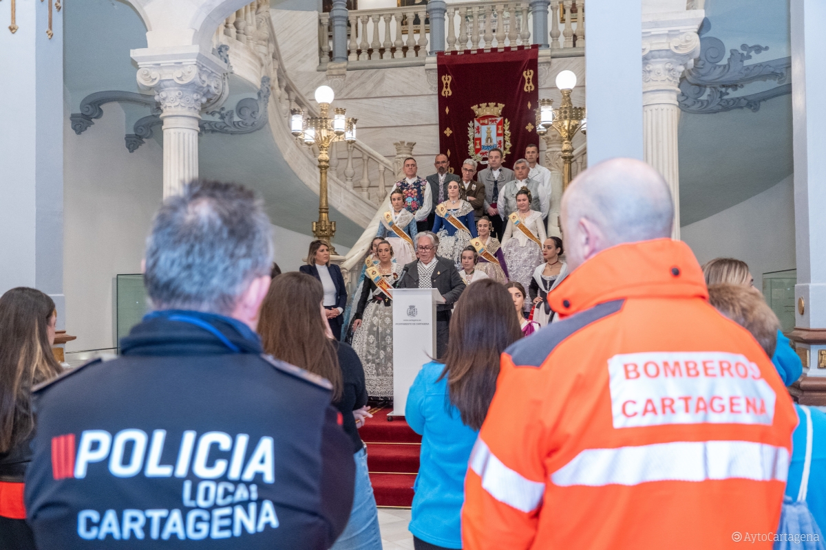 Los falleros también han agradecido a la alcaldesa y a los ediles de Seguridad y Turismo, José Ramón Llorca y Beatriz Sánchez del Álamo, por "liderar con decisión y empatía la respuesta del Ayuntamiento de Cartagena en estos momentos tan complicados, para coordinar la ayuda y para movilizar los recursos necesarios que tanto aliviaron a los afectados por la catástrofe". Ambos ediles también han estado presentes en esta recepción en el Ayuntamiento de Cartagena, a la que también han asistido una representación de Carthagineses y Romanos vestidos de época, así como integrantes del grupo folclórico de La Palma 'Ciudad de Cartagena'. El presidente de la Federación de Tropas y Legiones, Eduardo Conesa, ha reconocido el trabajo en primera línea de los efectivos de emergencias del Ayuntamiento de Cartagena y la ayuda de los festeros aportando su granito de arena.