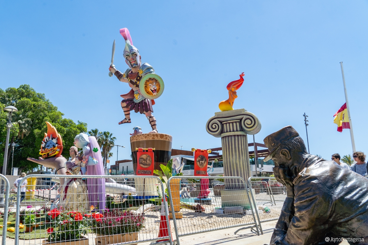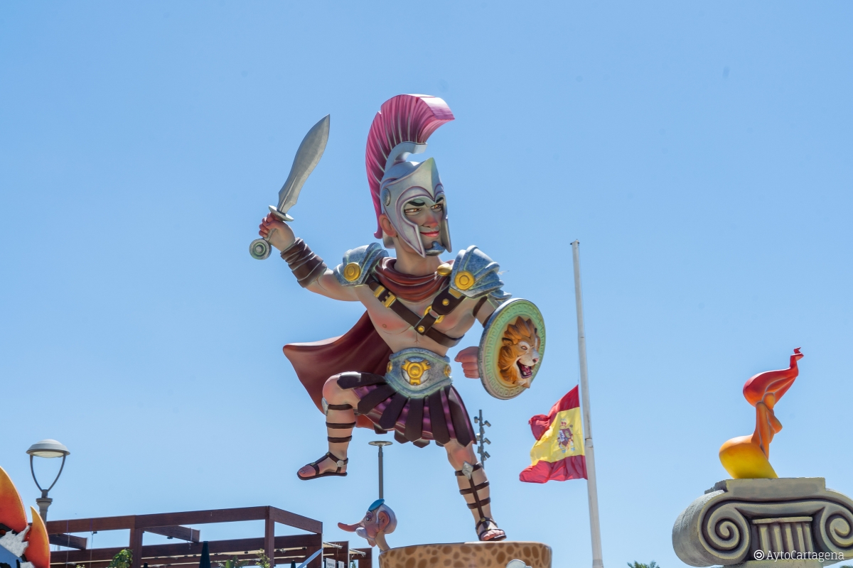La escultura fallera tiene una altura cercana a los diez metros. Ha sido elaborada por el maestro Pepe Benavent, célebre en distintas localidades de la provincia de Valencia por sus creaciones en lugares como Alzira, Cullera, Carcaixent o Albal. Para crear la falla de Cartagena ha tardado algo más de medio año en su diseño y elaboración.