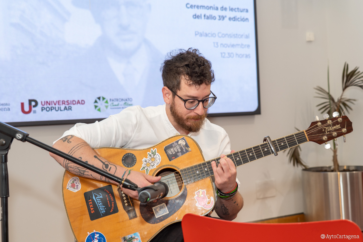 El acto, en el que la directora de la Universidad Popular, Mercedes Hernández, ha dado a conocer el acto del jurado, también ha contado con la actuación del cantautor cartagenero Rio Viré, quien ha puesto música y voz a tres poemas de Antonio Oliver: Desesperanzas (Mástil 1923-1925), Almendros (Otros poemas 1936) y Costa en Cabo de Palos (Otros poemas 1934).