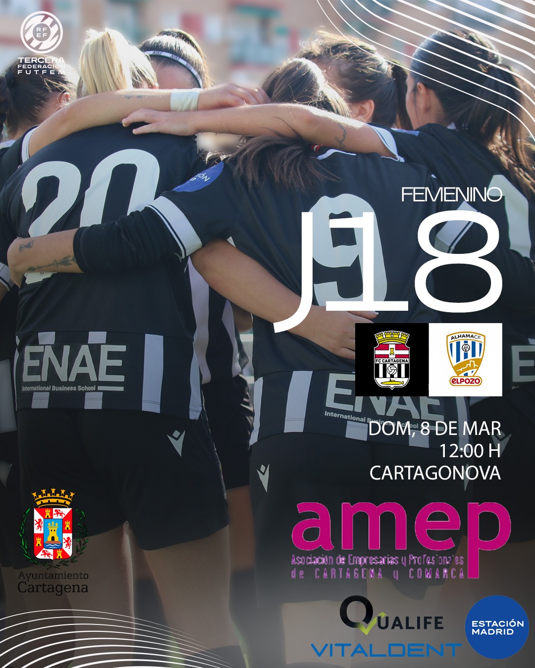 Fútbol Femenino. FC Cartagena - Alhama CF, a las 12:00 horas, en el Estadio Municipal Cartagonova. Coincidiendo con el Día Internacional de la Mujer Trabajadora (8M) el club y el Ayuntamiento de Cartagena han acordado que las deportistas disputen el partido en las instalaciones municipales. Entradas en www.fccartagena.compralaentrada.com