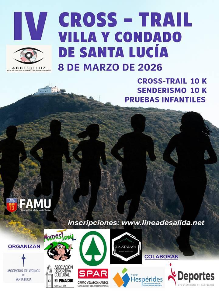 IV Cross-trail Villa y Condado de Santa Lucía, a las 10:30 horas, con salida desde la plaza de la Marina Española. La Asociación de Vecinos de Santa Lucía, la Asociación Cultural El Pinacho y el club Mudos Trail organizan junto a Deportes del Ayuntamiento esta prueba, que contará con categoría infantil, absoluta y una prueba senderista. El evento tendrá además un carácter solidario, ya que será a beneficio de la Asociación de Catarata Congénita de España “Accesdeluz”. Inscripciones en www.lineadesalida.net