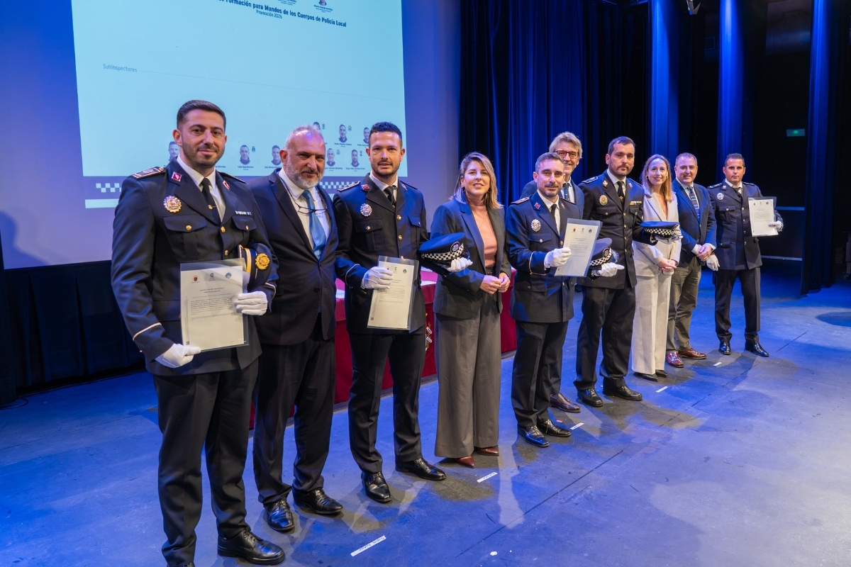 En el acto han recibido su acreditación agentes que desempeñarán sus funciones de mando en ocho municipios: Abarán, Águilas, Alcantarilla, Lorca, Mazarrón, Molina de Segura, Moratalla y Cartagena. En el caso de la ciudad portuaria, han recogido su diploma 4 comisarios, 5 inspectores y 13 subinspectores, lo que permite completar la estructura jerárquica del cuerpo.