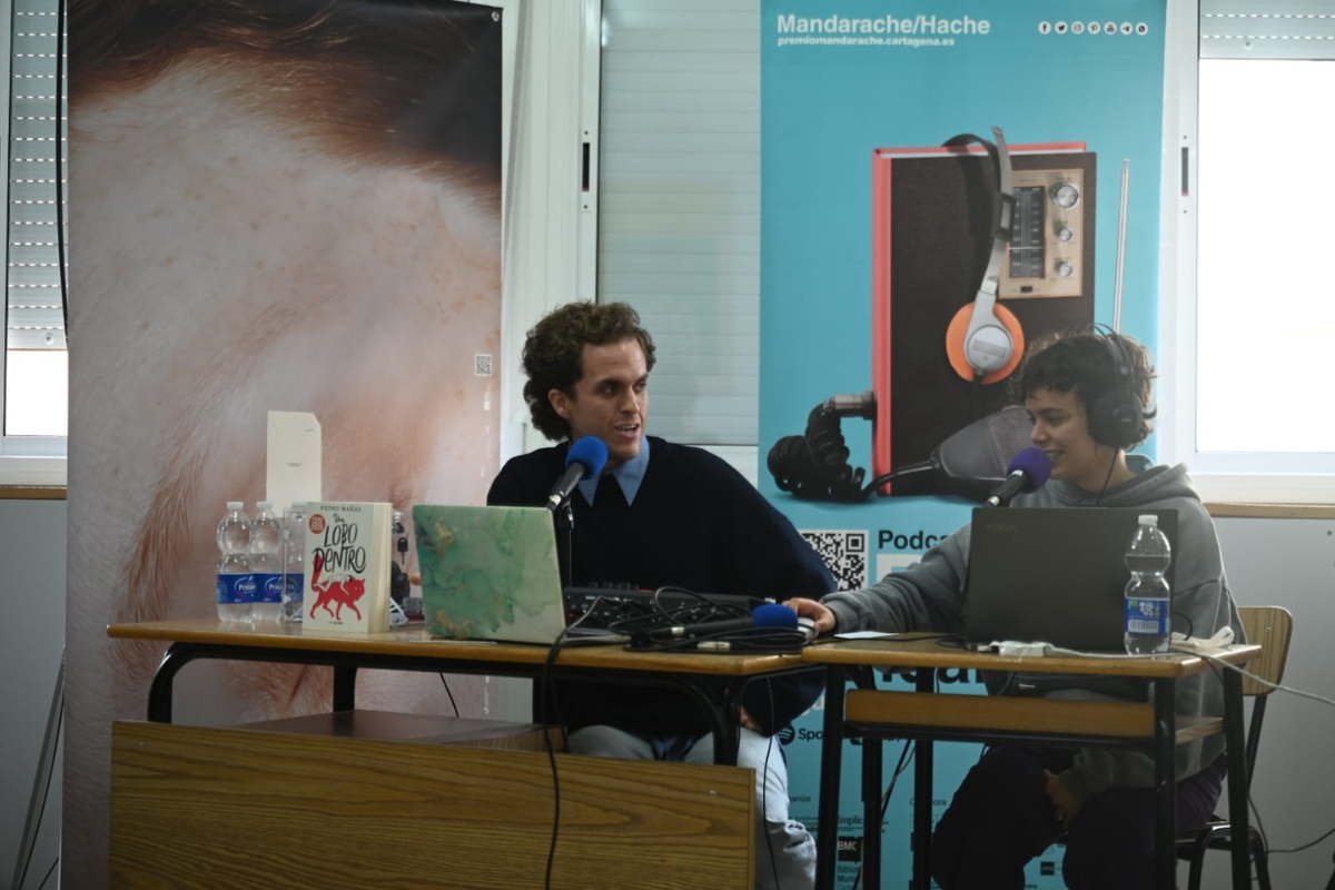 El autor candidato al premio por ‘Un lobo dentro’ protagoniza un nuevo episodio de Radio Mandarache desde el Colegio Carmelitas Cartagena