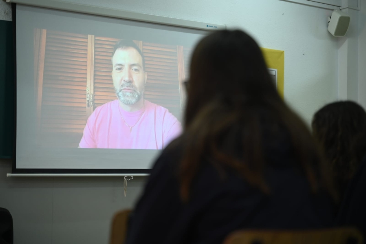 Este miércoles 11 de marzo, Pedro Mañas, finalista del Premio Hache 2026, se ha reunido con más de 25 centros educativos de Cartagena para protagonizar el último encuentro telemático de la temporada. El autor de ‘Un lobo dentro’ (Editorial Nube de Tinta, 2024) ha conversado en directo con estudiantes del Colegio Santa Joaquina Vedruna Cartagena, quienes han tenido la oportunidad de preguntarle sobre su novela y sobre su proceso de creación.