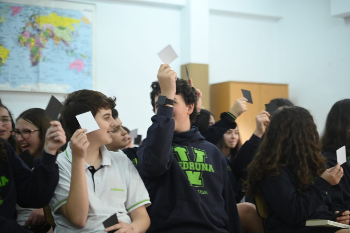 ‘Un lobo dentro’ es una historia que aborda el acoso escolar desde una perspectiva poco común: la del agresor. La novela sigue a Jacob, un joven que, tras vivir un proceso de acoso, decide asumir el miedo como su herramienta de poder. Su transformación en el Lobo es una reflexión sobre cómo las víctimas de acoso pueden llegar a adoptar papeles agresivos como respuesta a su sufrimiento. El relato pone en evidencia las dinámicas de violencia y cómo estas afectan la identidad y el crecimiento de quienes las viven. Pedro Mañas, galardonado con premios como el Premio Vila d’Ibi, el Premio Ciudad de Málaga y el Premio Anaya de Literatura Infantil y Juvenil, ha compartido con los estudiantes los temas centrales de su obra y su trayectoria como escritor. Tanto los participantes presenciales como los que siguieron el encuentro en línea han podido profundizar en la conversación sobre el poder del miedo, la identidad y las complejas emociones implicadas en el acoso escolar.