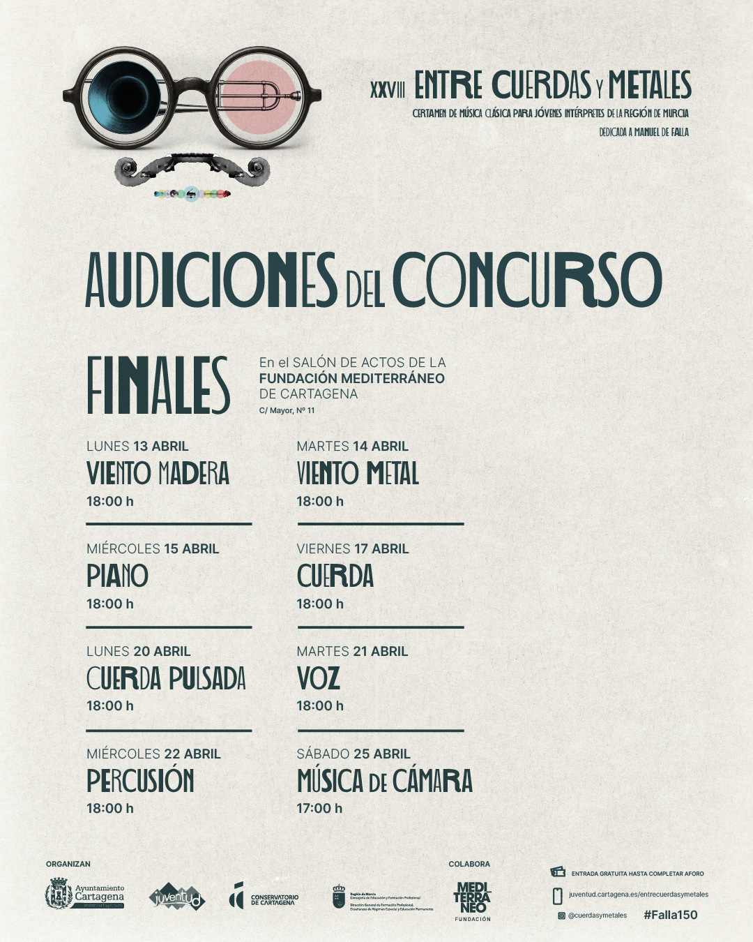 Entre Cuerdas y Metales. Final de Cuerda, a las 18:00 horas, en la Fundación Mediterráneo. El concurso organizado por el Ayuntamiento y el Conservatorio está celebrando las finales de las distintas modalidades musicales que componen su 28ª edición. Entrada libre, hasta completar aforo.