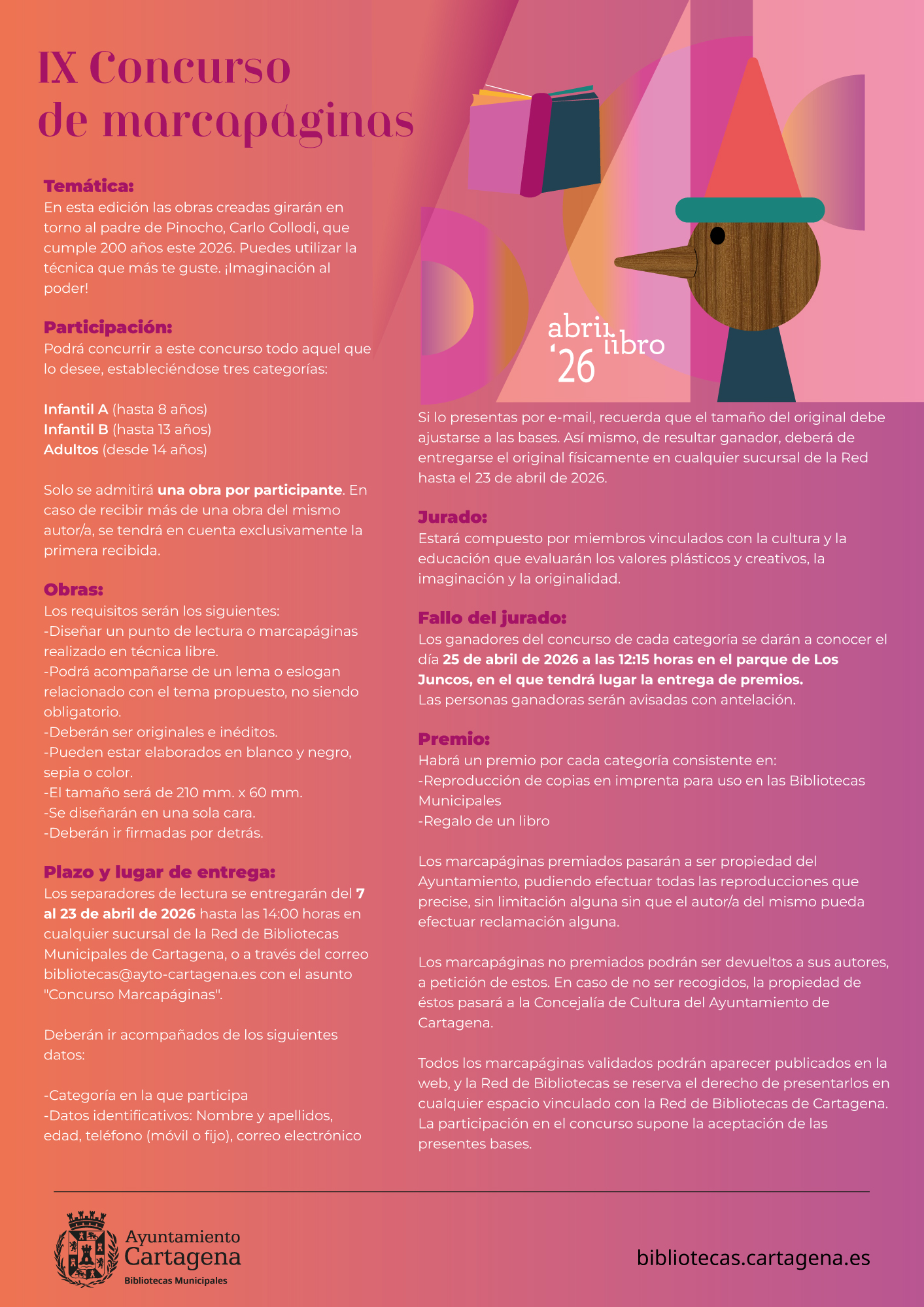Una de las jornadas más llamativas de la programación de AbrirLibro 2026 se vivirá este sábado 25 de abril, a partir de las 10:00 horas, en el Parque de Los Juncos. Cartageneros y visitantes podrán disfrutar de actividades Ven a disfrutar en familia, con talleres creativos, pintacaras, juegos y animaciones, además del espectáculo musical El rock se cuela en la escuela, que arrancará a las 12:30 horas. La entrada es libre.